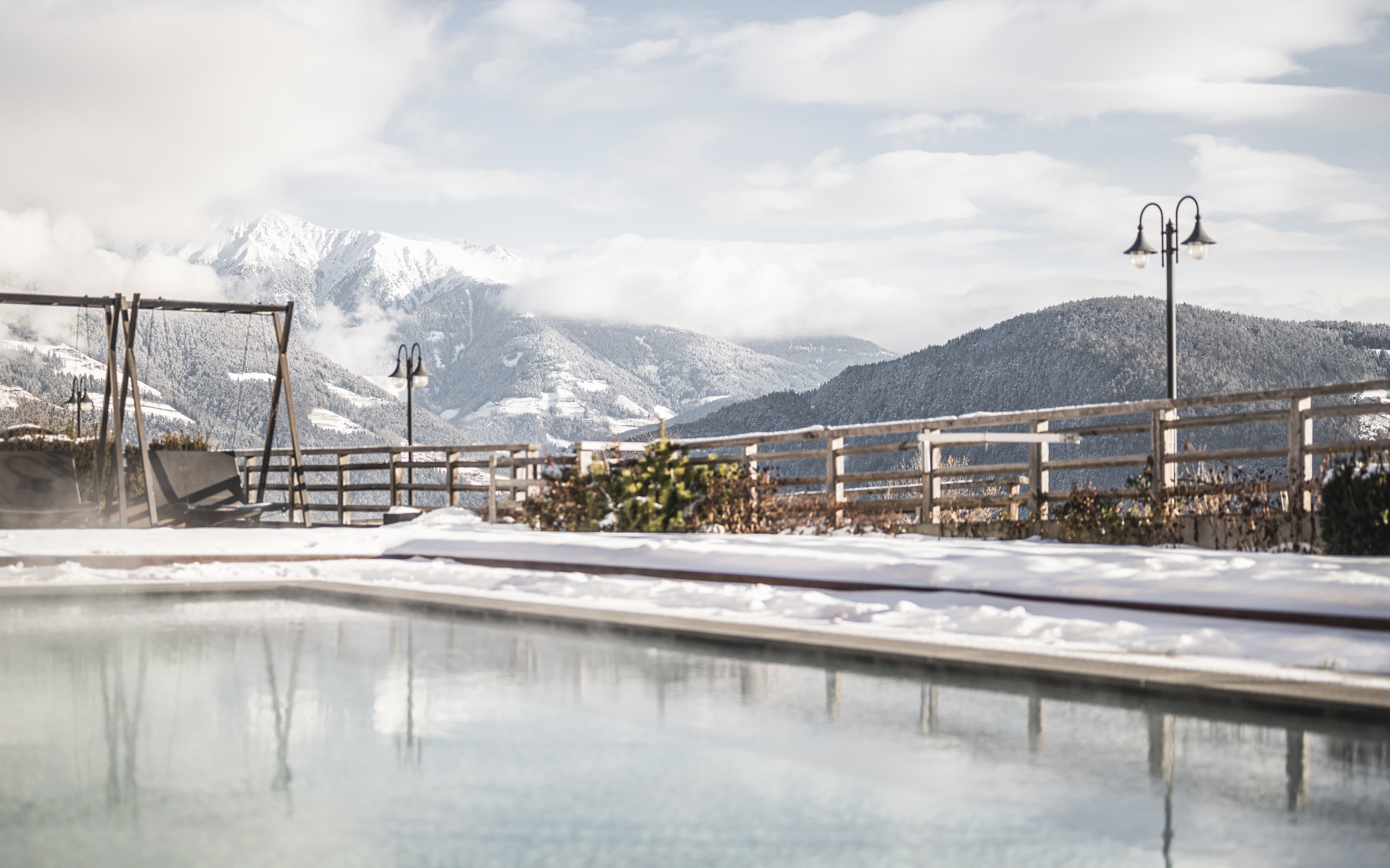 Entspannen Sie im großzügigen Wellnessbereich mit 8 Saunen, im beheizten In- und Outdoor-Panoramapool oder bei wohltuenden Anwendungen, die Körper und Geist neue Energie schenken. Wer zwischendurch gerne aktiv ist, entdeckt die verschneite Landschaft rund um das Bergdorf Spinges bei gemütlichen Spaziergängen, geführten Winterwanderungen oder beim Skifahren im Skigebiet Gitschberg Jochtal. Damit Sie diese besondere Zeit noch ein wenig länger genießen können, schenken wir Ihnen bei einer Reservierung von 5 Nächten eine Übernachtung.
