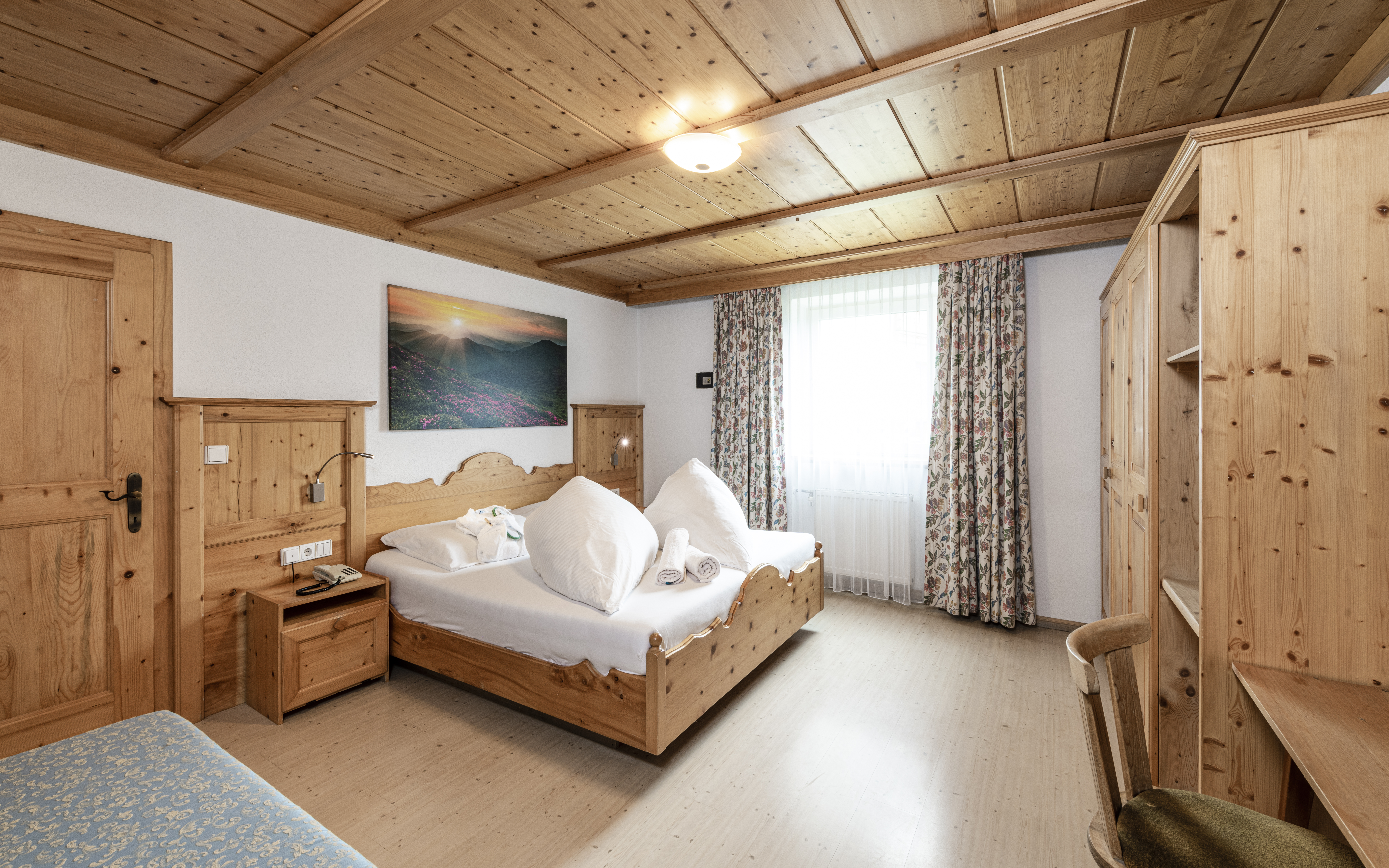 Sie liegt in unserer Dependance (ca. 100 m vom Hotel entfernt). Viel Raum und heimeliger Komfort mit großem Wohnraum (holzgetäfelte Stube, Bauernofen) und getrennten Zimmern.